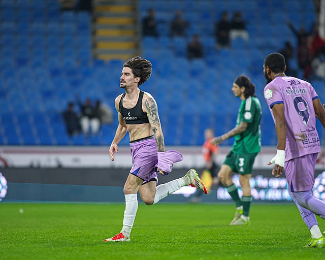 الضيف أكمل اللقاء بعشرة لاعبين https://media.assettype.com/sabq%2F2...mpress&fit=max قاد "أليكس كولادو" فريقه الخلود لتحقيق فوز ثمين على ضيفه الأهلي بهدف دون مقابل، وذلك في اللقاء الذي جمع الفريقين مساء اليوم الأربعاء على أرض ملعب مدينة الملك عبدالله الرياضية في بريدة، في افتتاح الجولة الخامسة عشرة من دوري روشن السعودي للمحترفين، بقيادة الحكم السويدي محمد الحكيم. https://media.assettype.com/sabq%2F2...mat%2Ccompress الشوط الأول انتهى بالتعادل السلبي بين الطرفين، وكان الأبرز هو تصدي قائم الأهلي لكرة لاعب الخلود "أليكس كولادو" في الدقيقة الـ30، ومثلها لزميله همام الهمامي في الدقيقة الـ45+8. ولم يكن هناك محاولات جادة للأهلي سوى تلك الكرة التي أرسلها "فيرمينو"، وتصدى لها حارس الخلود غروهي ببراعة في الدقيقة الـ38. https://media.assettype.com/sabq%2F2...mat%2Ccompress ومع مطلع الشوط الثاني، وتحديدًا في الدقيقة الـ55، خسر الأهلي خدمات مدافعه "ديميرال"، الذي خرج بالبطاقة الحمراء؛ ليكمل الفريق اللقاء بعشرة لاعبين. https://media.assettype.com/sabq%2F2...mat%2Ccompress وأضاع لاعب الخلود "مزياني" فرصة التقدم لفريقه في الدقيقة الـ70، حين طوح بالكرة من فوق حارس الأهلي "ميندي". وفي الوقت القاتل (90+2) خطف الخلود نقاط المباراة بهدف قاتل لـ"كولادو"، كان كافيًا لكسب المواجهة. وبتلك النتيجة بقي الأهلي في المركز الخامس برصيد 26 نقطة، فيما قفز الخلود للمركز الـ12 رافعًا رصيده للنقطة الـ16. https://media.assettype.com/sabq%2F2...mat%2Ccompress https://media.assettype.com/sabq%2F2...mat%2Ccompress |