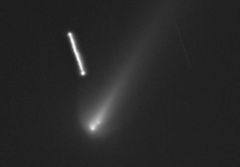 شاهد.. مذنب atlas ينقسم إلى ثلاث أنوية ومرصد عربي يوثق الظاهرة بدقة