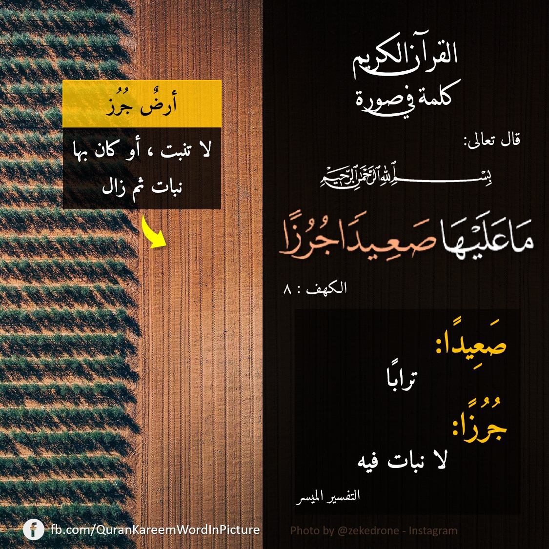 كلمات "صَعِيدًا" ، "جُرُزًا" سورة الكهف - الآية 8 قال الله تعالى: {إِنَّا جَعَلْنَا مَا عَلَى الْأَرْضِ زِينَةً لَّهَا لِنَبْلُوَهُمْ أَيُّهُمْ أَحْسَنُ عَمَلًا (7) وَإِنَّا لَجَاعِلُونَ مَا عَلَيْهَا صَعِيدًا جُرُزًا (8)} التفسير الميسر: إنَّا جعلنا ما على وجه الأرض من المخلوقات جَمالا لها، ومنفعة لأهلها؛ لنختبرهم: أيُّهم أحسن عملا بطاعتنا، وأيهم أسوأ عملا بالمعاصي، ونجزي كلا بما يستحق. وإنَّا لجاعلون ما على الأرض من تلك الزينة عند انقضاء الدنيا ترابًا، لا نبات فيه. |