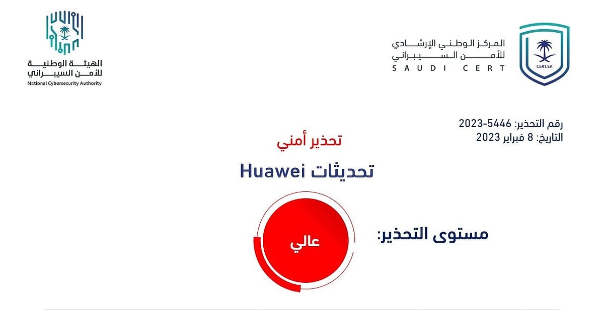 أصدر المركز الوطني الإرشادي للأمن السيبراني اليوم تحذيرًا عالي الخطورة حول وجود ثغرة أمنية لدى منتجات شركة "هواوي Huawei"؛ إذ أصدرت الشركة تحديثًا لمعالجة ثغرة في Huawei Whole-Home Intelligence Software. وتفصيلاً، يتمثل تهديد الثغرة في تعيين الصلاحيات؛ بما يؤدي إلى السماح للمهاجم بالوصول غير المصرح به إلى عمليات أو خصائص مقيدة الصلاحيات. وأوصى "الأمن السيبراني" بتحديث النسخ المتأثرة بهذه الثغرة؛ إذ إن شركة هواوي Huawei أصدرت توضيحًا لهذه التحديثات |
