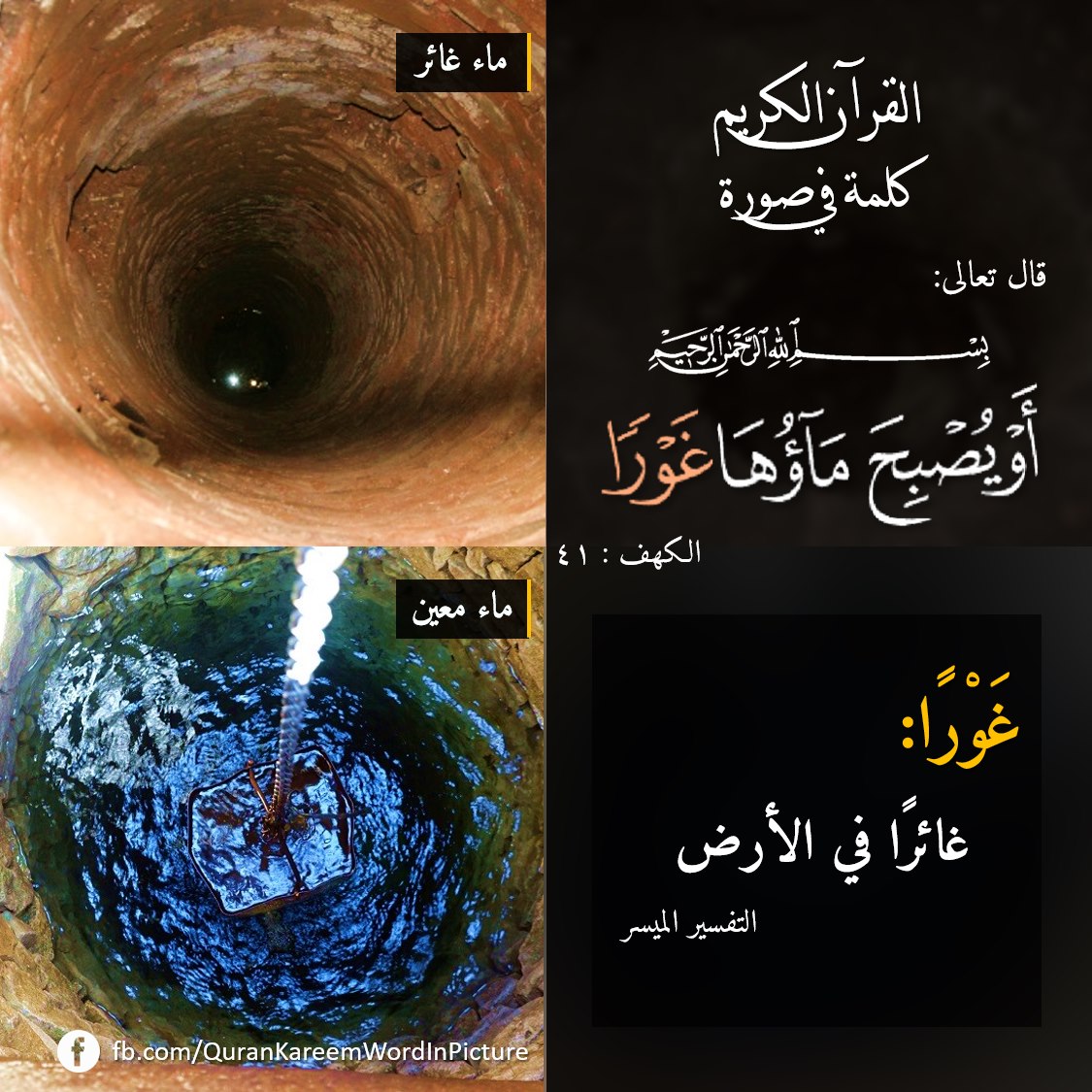 قال الله تعالى: {أَوْ يُصْبِحَ مَاؤُهَا غَوْرًا فَلَن تَسْتَطِيعَ لَهُ طَلَبًا (41)}
